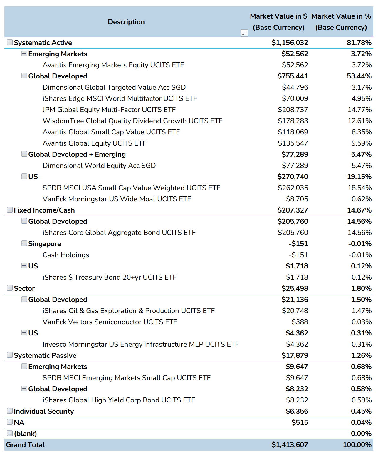 Portfolio by Fund, Cash or Individual Security