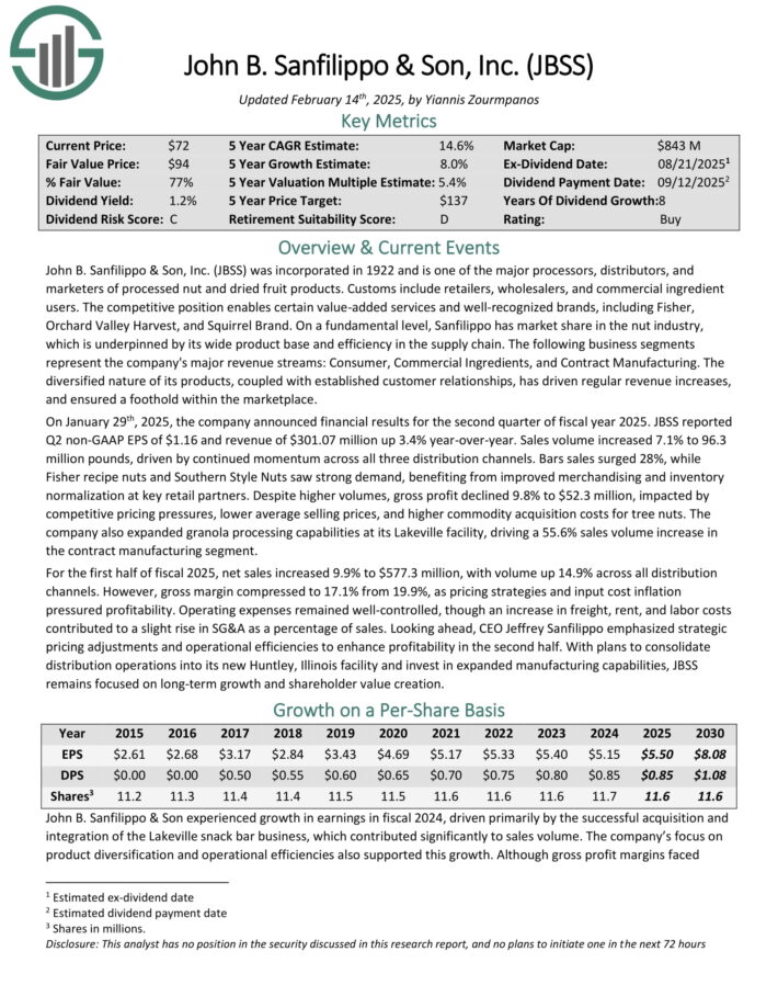 Beaten Down Dividend Stock #6: John B. Sanfilippo & Son (JBSS)