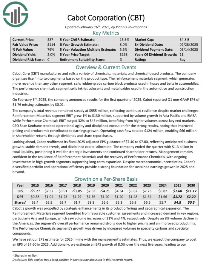 Beaten Down Dividend Stock #5: Cabot Corporation (CBT)