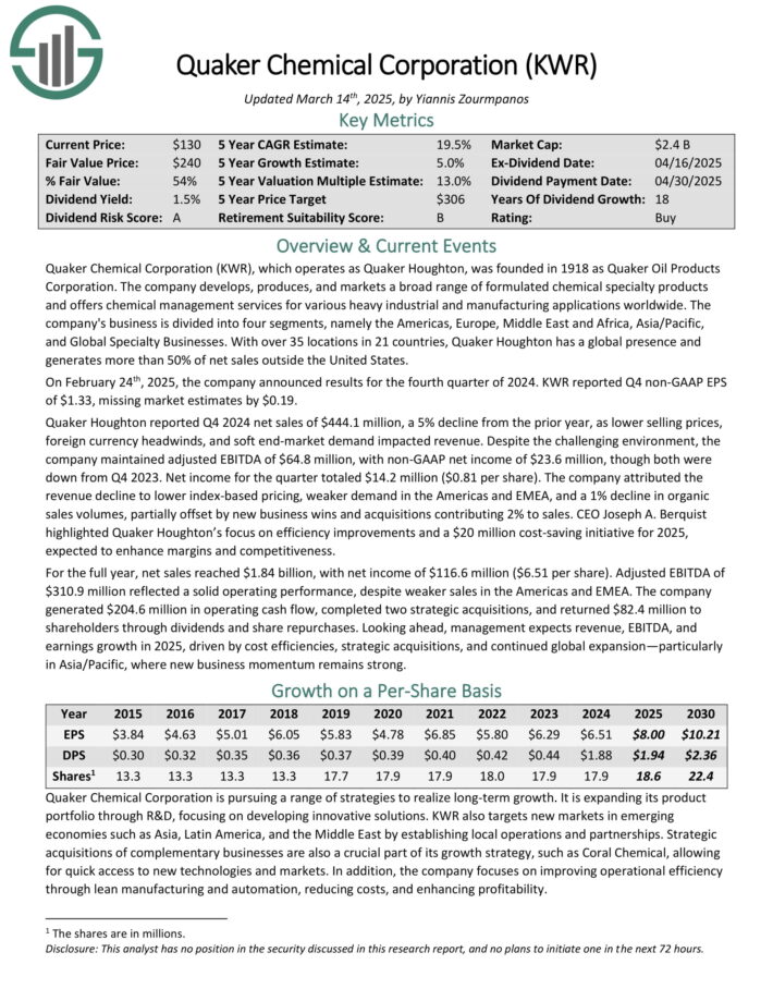 Beaten Down Dividend Stock #1: Quaker Chemical Corporation (KWR)