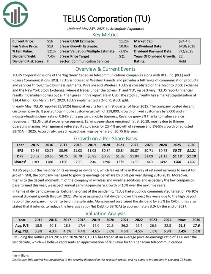 High Yield Blue Chip #5: Telus Corp. (TU)