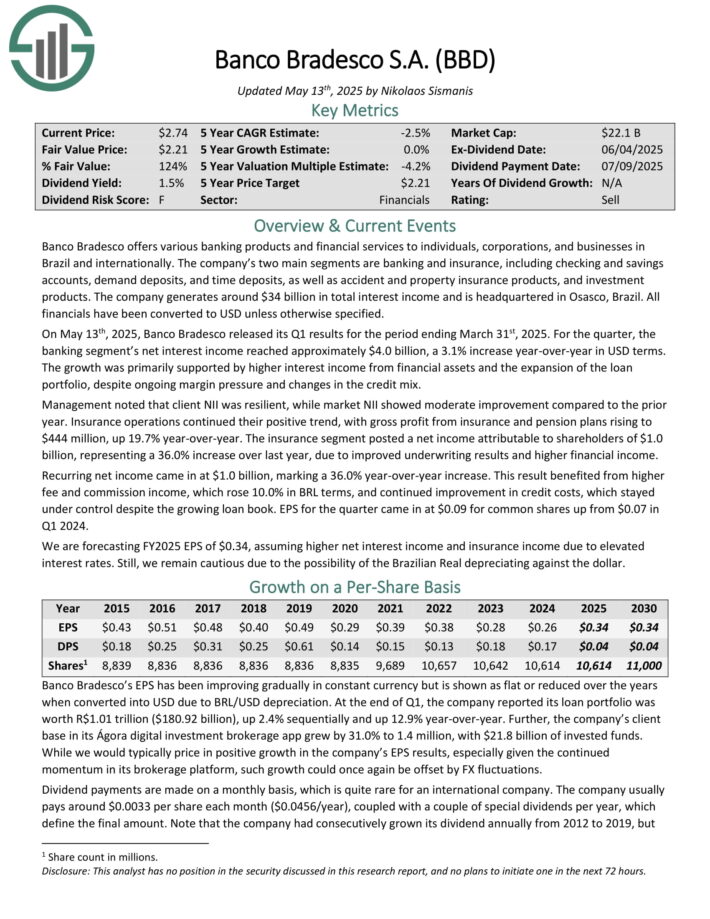 Monthly Dividend Stock To Sell: Banco Bradesco S.A. (BBD)