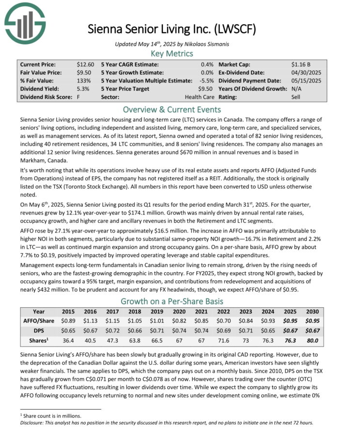Monthly Dividend Stock To Sell: Sienna Senior Living (LWSCF)