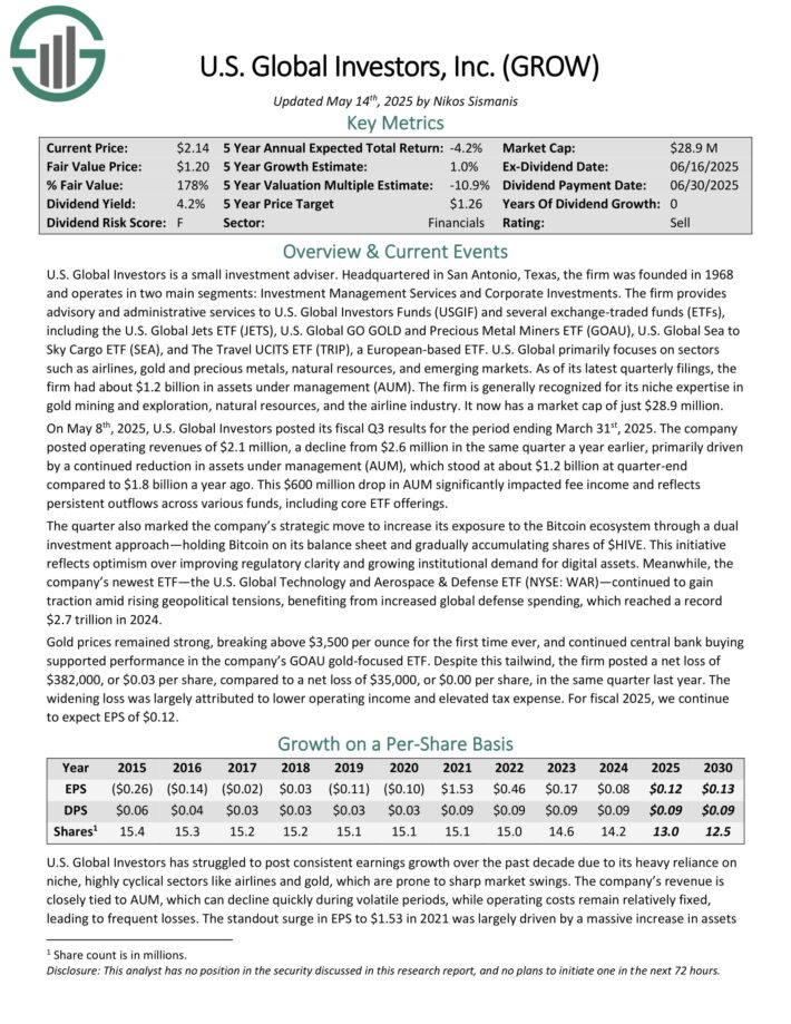 Monthly Dividend Stock To Sell: U.S. Global Investors (GROW)