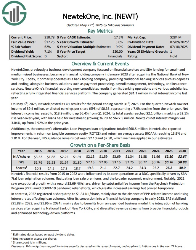 Undervalued High Dividend Stock #5: NewtekOne Inc. (NEWT) – P/E ratio of 5.1