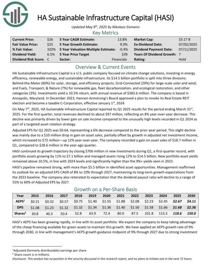 Click here to download our most recent Sure Analysis report on HASI (preview of page 1 of 3 shown below):