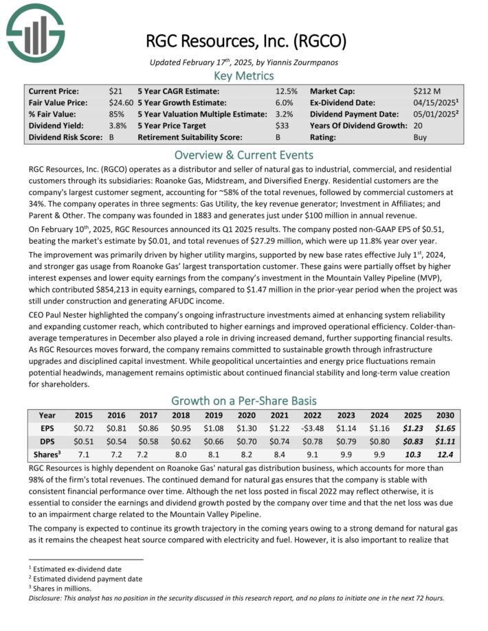 On February 10th, 2025, RGC Resources announced its Q1 2025 results. The company posted non-GAAP EPS of $0.51, beating the market’s estimate by $0.01, and total revenues of $27.29 million, which were up 11.8% year over year.