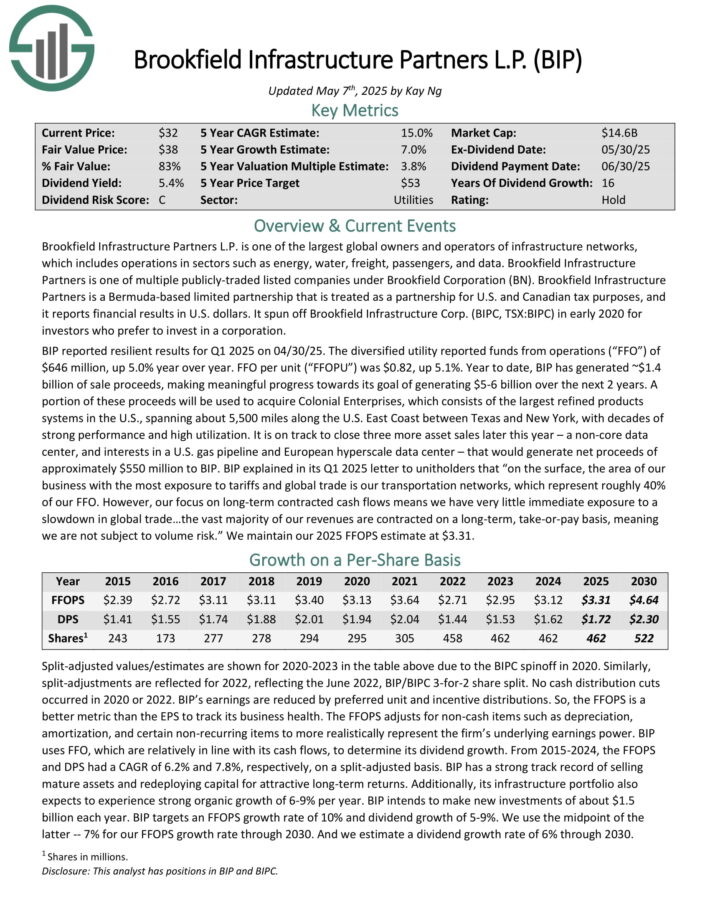 BIP has a strong track record of selling mature assets and redeploying capital for attractive long-term returns. Additionally, its infrastructure portfolio also expects to experience strong organic growth of 6-9% per year.