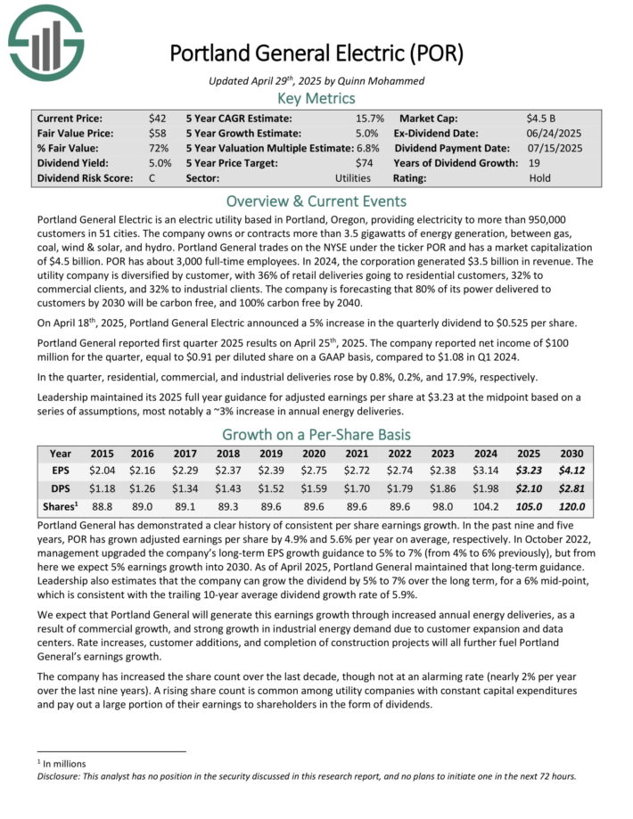 Portland General reported first quarter 2025 results on April 25th, 2025. The company reported net income of $100 million for the quarter, equal to $0.91 per diluted share on a GAAP basis, compared to $1.08 in Q1 2024.