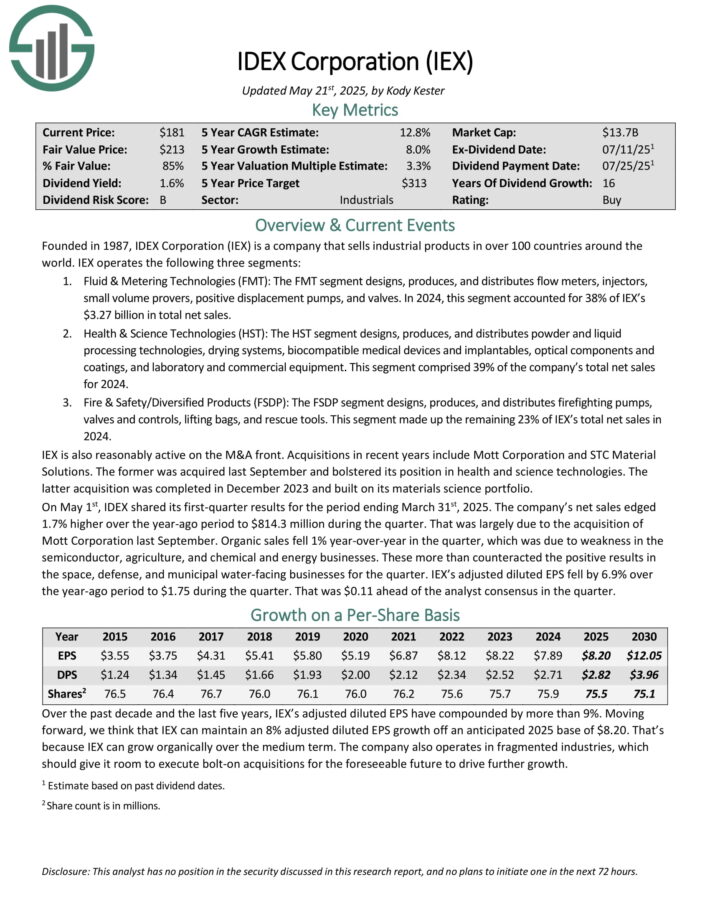 Click here to download our most recent Sure Analysis report on IEX (preview of page 1 of 3 shown below):
