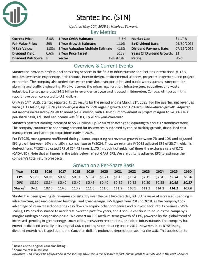 On May 14th, 2025, Stantec reported its Q1 results for the period ending March 31st, 2025. For the quarter, net revenues were $1.12 billion, up 13.3% year-over-year due to 5.9% organic growth and 3.2% acquisition-driven growth.