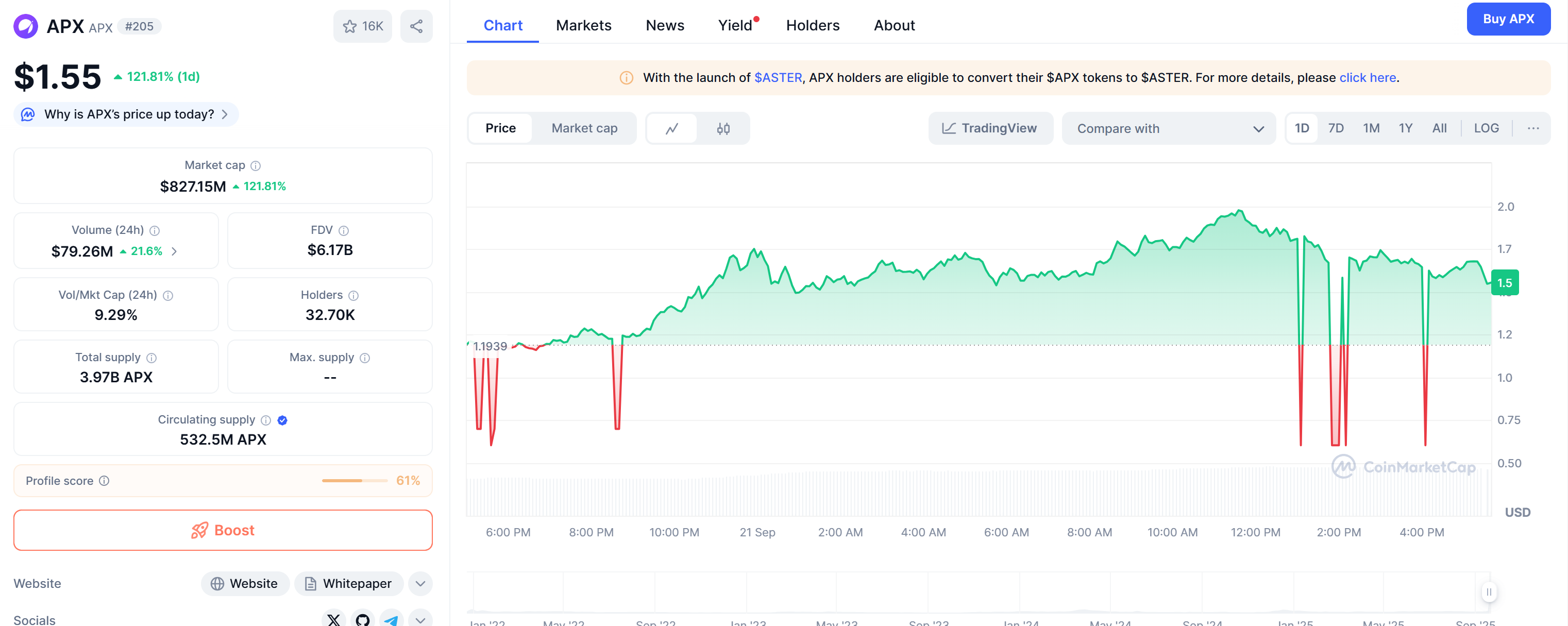 APX surges after token swap to ASTER goes live