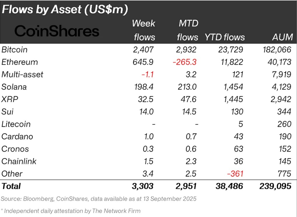Global crypto ETPs saw $3.3 billion in inflows last week, lifting overall assets under management (AUM) to $239 million, which nears the record high seen in August. Last month, crypto ETPs saw an all-time high AUM of $244 billion.