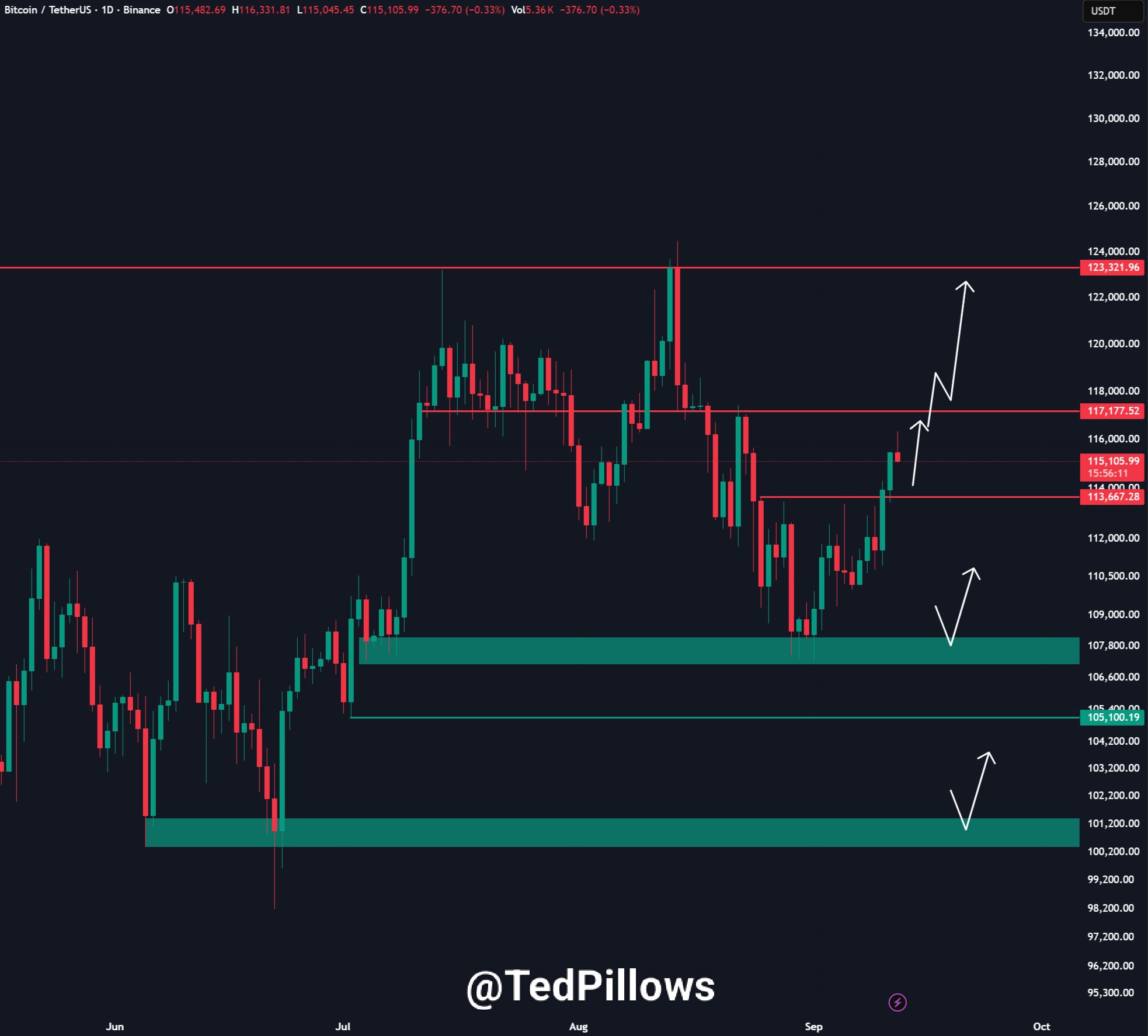 Pillows warned that if the price treats the top of the gap as resistance, it may result in a return to monthly lows under $108,000.