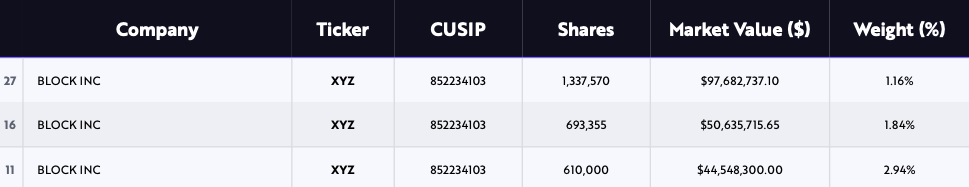ARK’s Block share purchase included transactions from its three holding funds, including the ARK Innovation ETF (ARKK), ARK Next Generation Internet ETF (ARKW) and ARK Fintech Innovation ETF (ARKF).