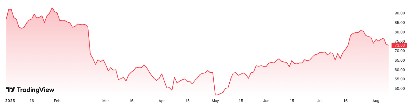 Despite Block’s strong financial results, its price declined almost 7% following the release of its Q2 report. Although seeing a notable rebound since May, Block shares are down 21% from the price levels seen in January, according to TradingView.