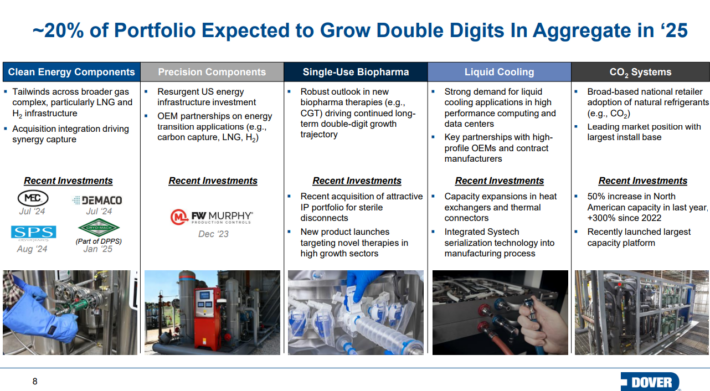 Additionally, the company’s current businesses are expected to contribute to double-digit growth this year. Much of this growth will stem from a high percentage of Dover’s businesses achieving 20% or more growth on a year-over-year basis.