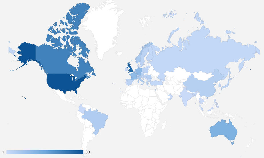 So, this is where everybody lives. To sum it up by continent – of the 286 respondents there are 123 (43%) in North America, 114 (40%) in Europe, 30 (10%) in Asia, 13 (5%) in Oceana and 6 (2%) in South America. No surprises there, though it does show how we – and the crypto space in general – have much work to do in areas south of the Brandt Line. One way to go about this is to seed more international Ethereum meetups. You can see a map of all the current Ethereum meetups here (We have 81 in total all over the world from London to New York to Tehran with over 6000 members taking part). If you'd like to start one yourself, please do message us and we can offer further assistance – info@ethereum.org.