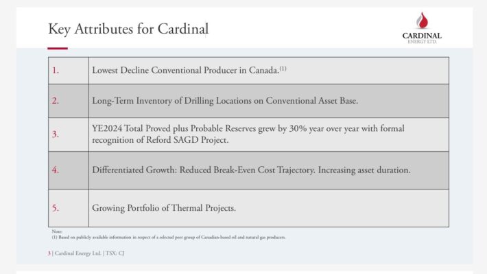 Cardinal Energy (CRLFF) has two appealing investment characteristics: