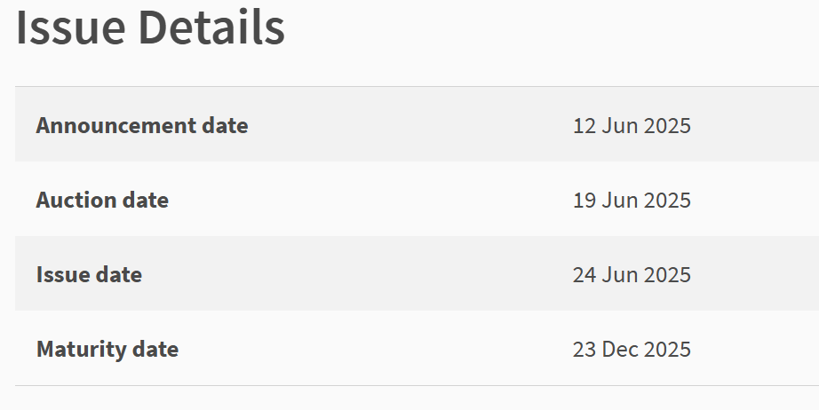 A Singapore Treasury Bill issue (BS25112X) will be auctioned on Thursday, 19th Jun 2025.