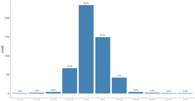 | 95% CI | (-1.191, 2.280) | (-0.585, 9.465) | (-0.432, -0.064) | (-1.449, 6.704) | (-4.015, 6.745) | |