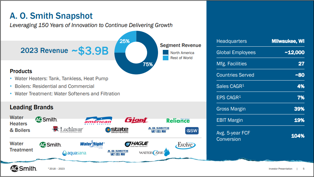 A.O. Smith is a leading manufacturer of residential and commercial water heaters, boilers and water treatment