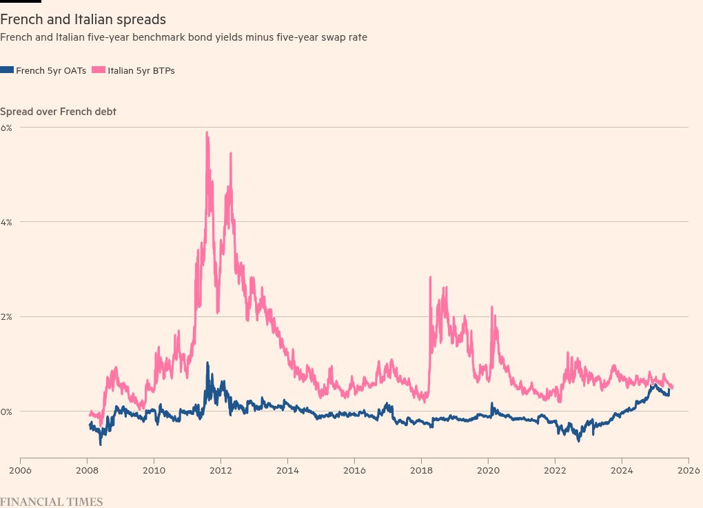 But still, it’s sort of interesting — in a Friday afternoon sort of way — to see that France has started to trade at a spread over *checks notes* Italy.