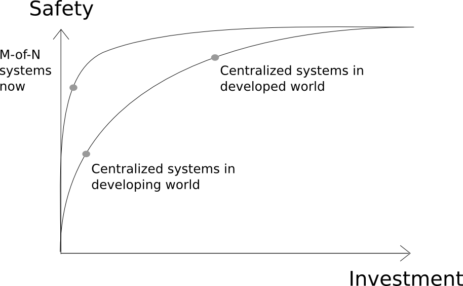 The key promise of decentralized technology, under this viewpoint, is not to create systems that are even more trustworthy than current large institutions; if one simply looks at basic statistics in the developed world, one can see that many such systems can quite reasonably be described as being “trustworthy enough”, in that their annual rate of failure is sufficiently low that other factors dominate in the choice of which platform to use. Rather, the key promise of decentralized technology is to provide a shortcut to let future application developers get there faster: